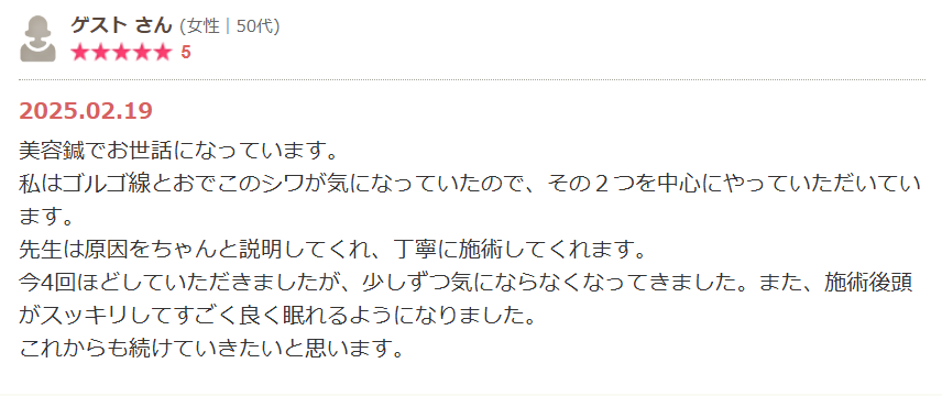 当院の美容鍼は、治療にも使用している技術を用いていますので、効果的にお悩みを改善していくことができます。頭痛や不眠など、美容以外のお悩みにもできるだけ対応しますので、遠慮せずにおっしゃってくださいね♪