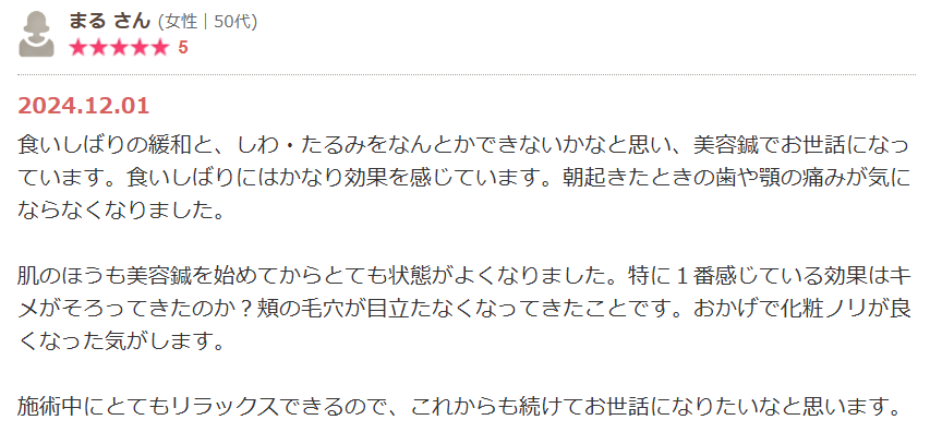 当院では、治療でも用いている鍼の手法と電気を使い、凝り固まった表情筋をほぐすとともに、普段あまり使っていない表情筋に刺激を与えることで、リフトアップ効果やシワの改善効果が期待できます。